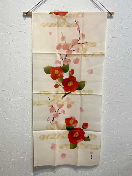 商品名:絵てぬぐい 梅椿にぼたん雪